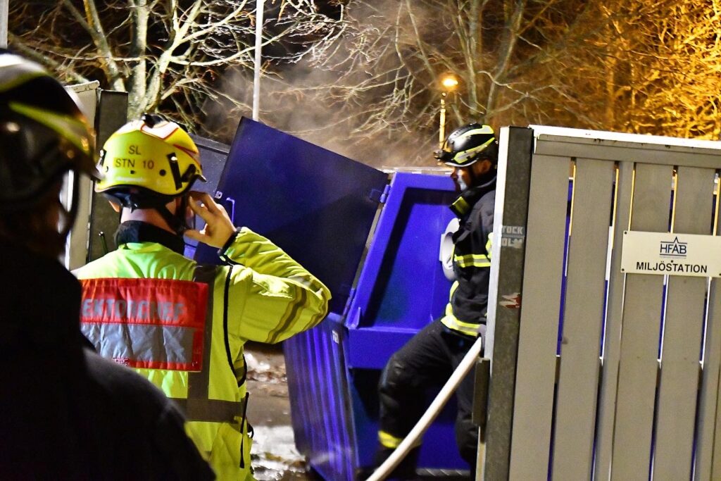 Larmet om branden kom in till SOS Alarm vid klockan 23.15. När man kom fram brann det kraftigt i containern.